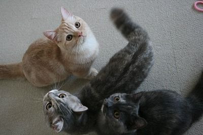 ねずみ争奪戦。 投稿者 じゅん 日付: 10月 03, 2007 リンクを取得 Facebook × Pinterest メール 他のアプリ (きらきら)ねずみにゃーんねずみにゃーん!「ねずみさん投げるよ~」(だだだだだっ!!)(はぐはぐ)(がぶりっ)ねずみつかまえたにゃっ(だだだだだ~)いつも通り、ローズがくわえて持っていっちゃいました。 コメント 匿名 さんのコメント… 一番にかわいいお手々を出すのがショコラちゃんで、持ってくのはローズちゃんなんですね。ペコーちゃんは引っ込み思案なのかしら? じゅん さんの投稿… *りんごさん*ペコーもねずみとりに参加するんですけど、ローズが持っていっちゃうので、それまでになんとか捕まえようと必死ですよ~。でも持ってかれちゃうと、あーあって顔でローズみてますね