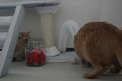 やぱ、他のにゃんずが来ると、気になってしょうがないって感じだねぇwwwペコーにゃんはテリトリーを荒らされないように監視してる感じ♪そうそう、にゃんSは意外と嫉妬深いので、他のにゃんこが来た後はたっぷりと甘やかしてあげてねぇ(笑