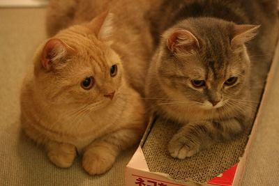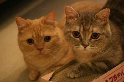ペコにゃん・ショコにゃんは何を見ているのかな?動きがシンクロしてて可愛い!!